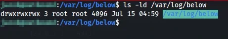 /var/log/belowis world-writable - The attacker can run