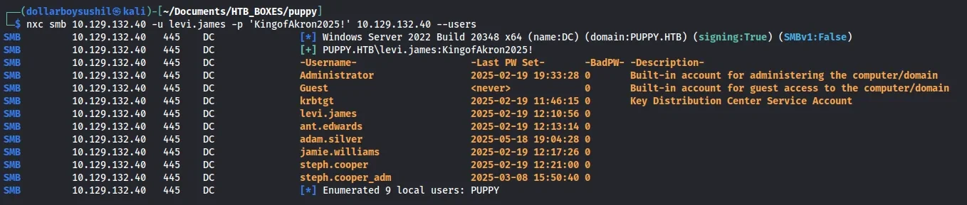 After this, I dumped username of the domain using netexec tool.